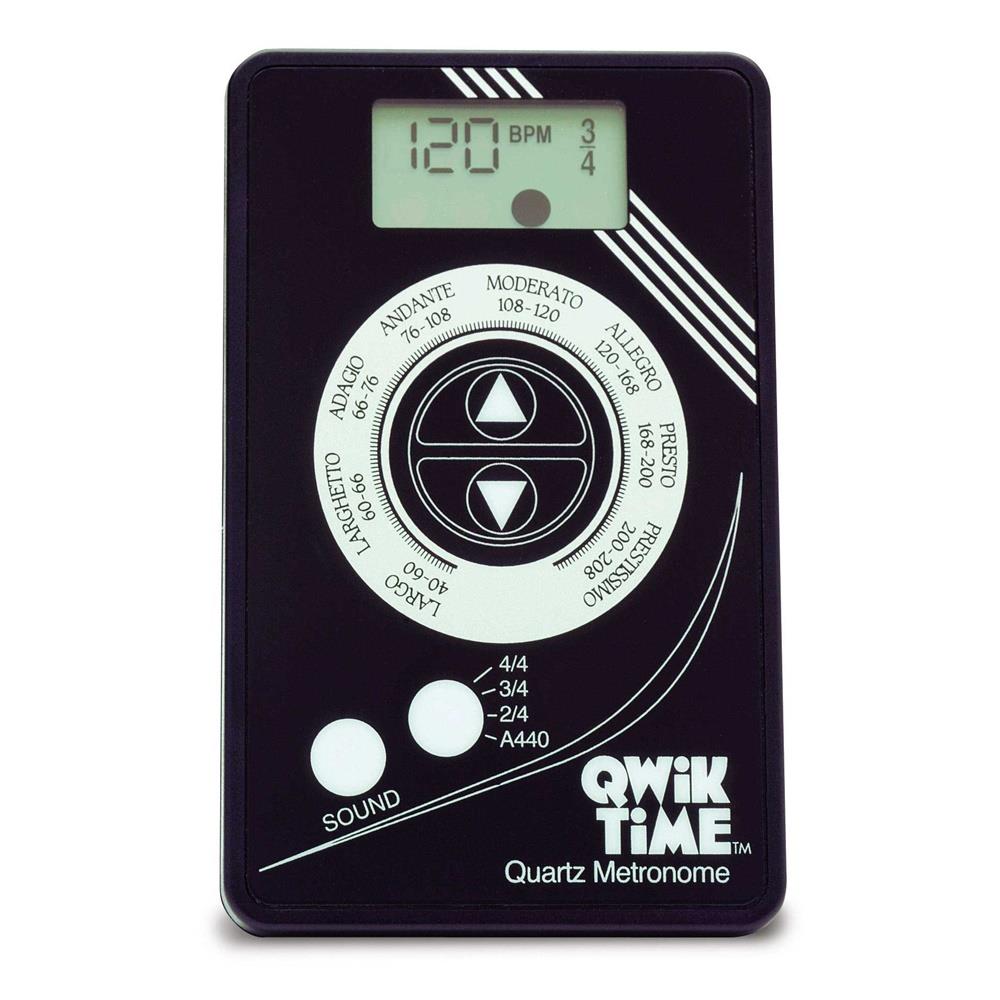 A Metronome the size of a Credit Card! The QT5 operates in 2/4, 3/4 or 4/4 rhythms. The display screen also utilizes a bouncing ball for visualizing each rhythm. With accent beats, and over 200 speeds from 40 BPM to 250 BPM.