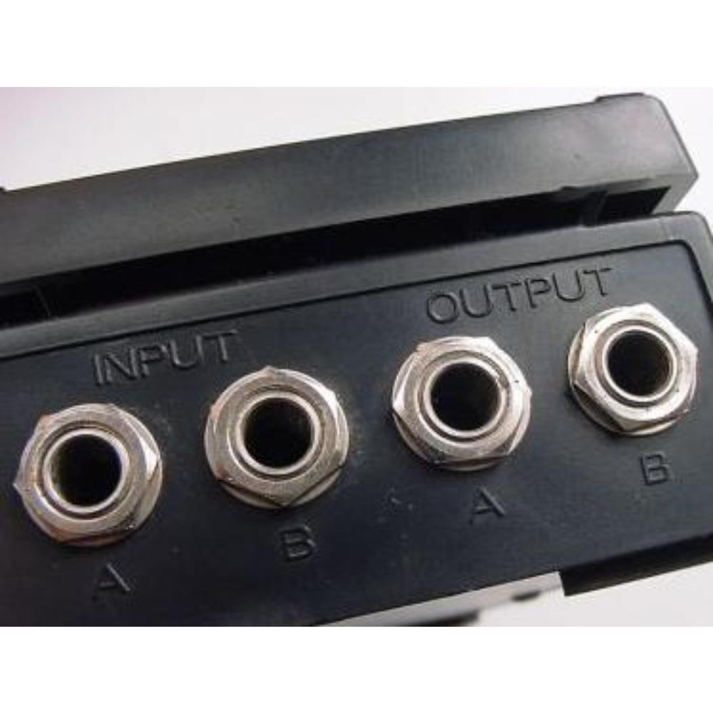 VOLUME MODE: Two different signals, or a stereo output of a synthesizer, may be applied to the inputs. The signal at input A will pass to output A at full volume when the pedal is fully depressed. Gradually backing off the pedal will likewise decrease volume until the top position is reached. In this position the volume will be at a level previously set by the minimum volume control. At the lowest setting of this control no signal is passed. Channel B will perform identically, sharing the same pedal but remaining discrete.
